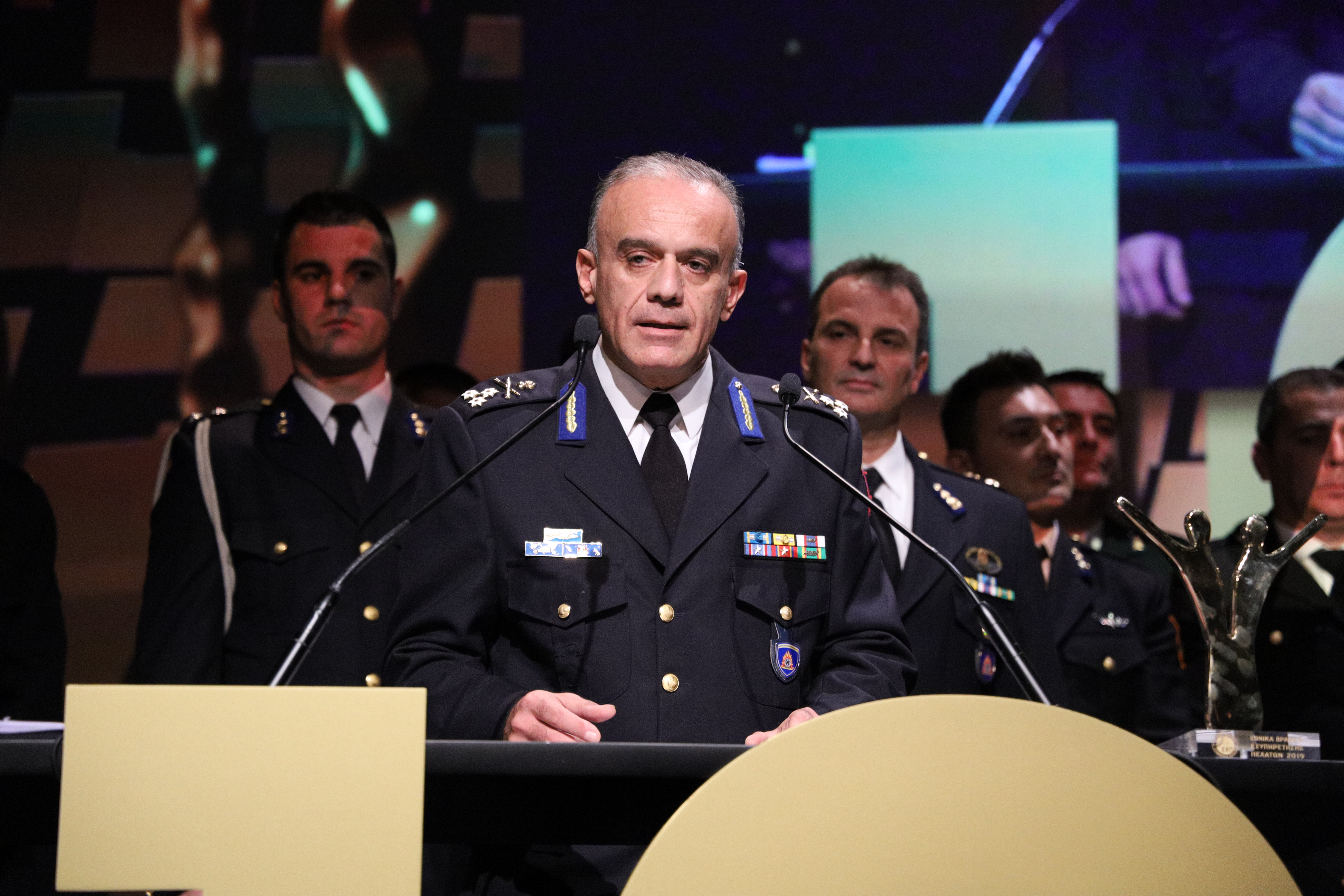 Ο Υπαρχηγός Επιχειρήσεων Αντιστράτηγος ΠΣ Στέφανος Κολοκούρης, στην ομιλία του δεν παρέλειψε να ευχαριστήσει τους διοργανωτές της εκδήλωσης και τόνισε μεταξύ άλλων: «[…] Αυτό το βραβείο ανήκει όχι μόνο σε εμάς που είμαστε εδώ σήμερα, αλλά στο σύνολο των ανδρών και γυναικών του Πυροσβεστικού Σώματος που εργάζονται σκληρά, δίνουν τη μάχη τους καθημερινά με την πύρινη λαίλαπα και με μεθοδικότητα πετυχαίνουν αυτό που η Πολιτεία τούς όρισε να εκτελούν, τίποτα λιγότερο από το καθήκον τους, με αυταπάρνηση, προς όφελος του κοινωνικού συνόλου, για να είναι οι πολίτες αυτής της χώρας ασφαλείς και ο δασικός μας πλούτος προστατευμένος […]».