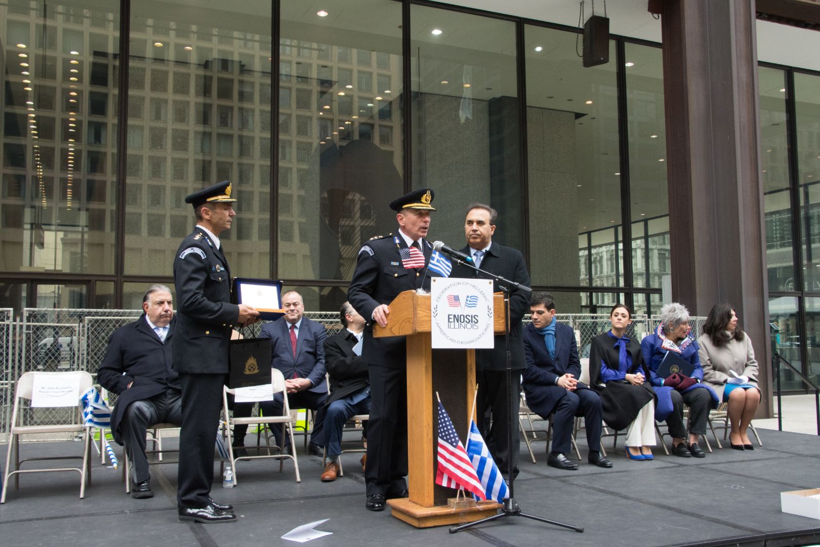 Στις 24 Μαρτίου, πραγματοποιήθηκε επίσκεψη στο Ελληνικό καθώς και στο Τουρκικό προξενείο, κατά τη διάρκεια της οποίας ο Τούρκος πρόξενος εξέφρασε τις ευχαριστίες του για την Ελληνική συνδρομή. Εν συνεχεία, σε μία πολύ συγκινητική τελετή, πραγματοποιήθηκε κατάθεση στεφάνων και έπαρση της Ελληνικής σημαίας στην πλατεία «Richard J. Daley Plaza» του Σικάγο.
