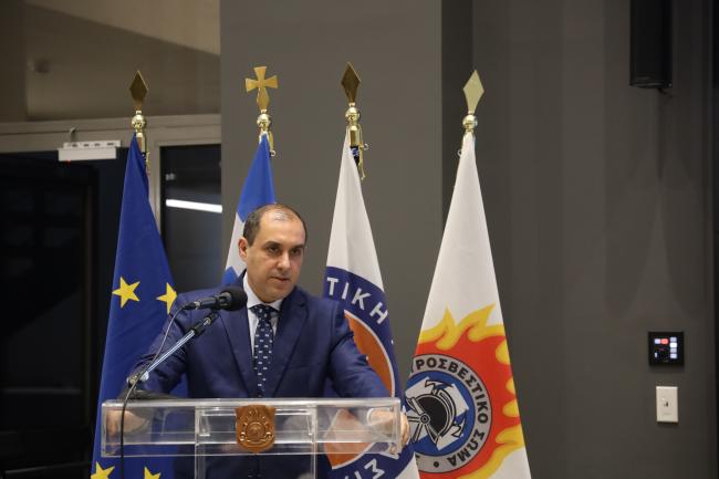 Παρουσία των Υφυπουργών Κλιματικής Κρίσης και Πολιτικής Προστασίας Ευάγγελου Τουρνά και Κωνσταντίνου Κατσαφάδου, του Γενικού Γραμματέα Αποκατάστασης Φυσικών Καταστροφών και Κρατικής Αρωγής Πέτρου Καμπούρη και του Υπαρχηγού του Πυροσβεστικού Σώματος Αντιστράτηγου Γεώργιου Μαρκουλάκη που εκπροσώπησε τον Αρχηγό του Πυροσβεστικού Σώματος Αντιστράτηγο Θεόδωρο Βάγια, πραγματοποιήθηκε σήμερα, στις εγκαταστάσεις του Υπουργείου, στο Μαρούσι, η κεντρική εκδήλωση για τον εορτασμό της Εθνικής Επετείου της 28ης Οκτωβρίου του 1940.