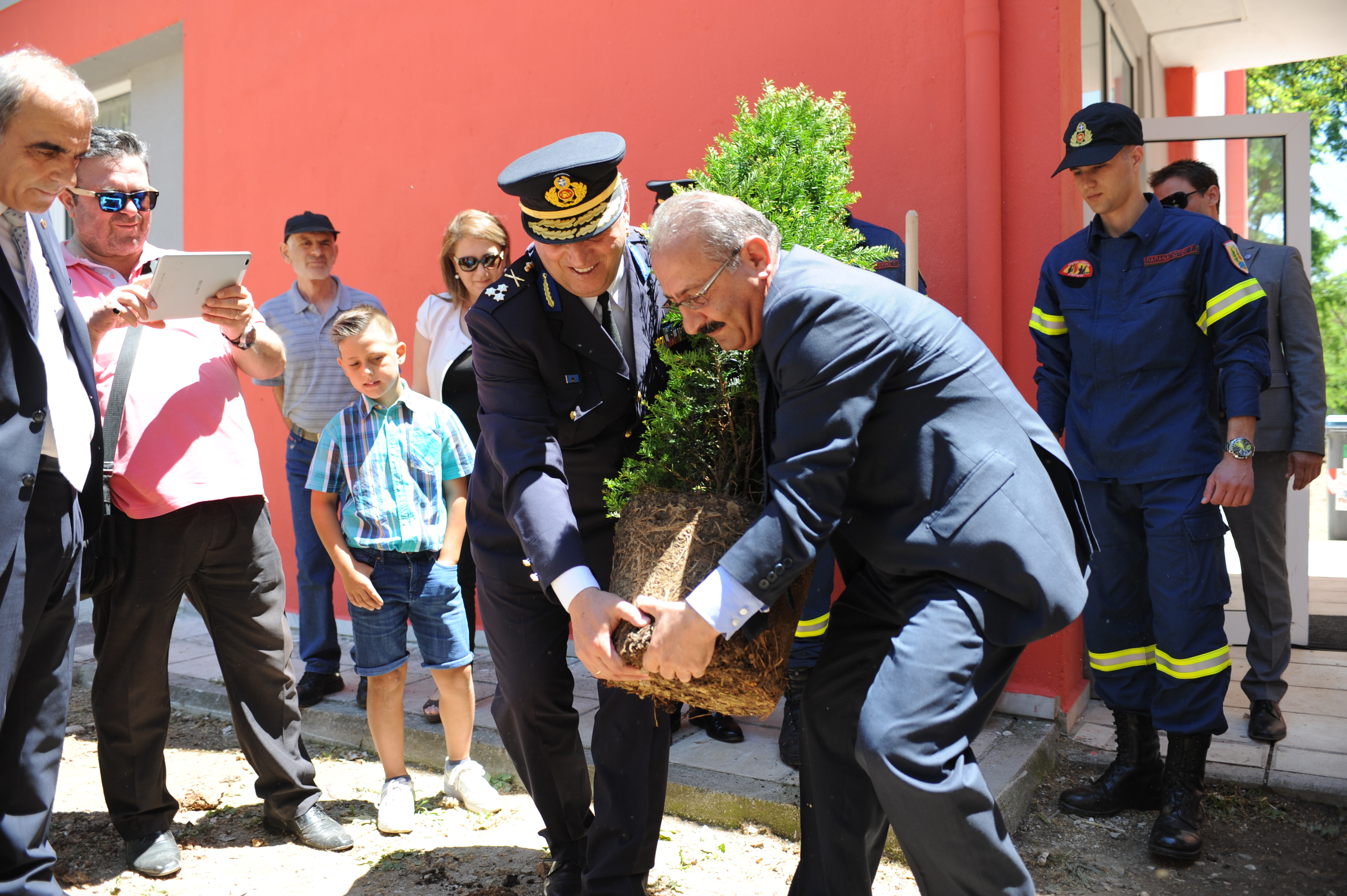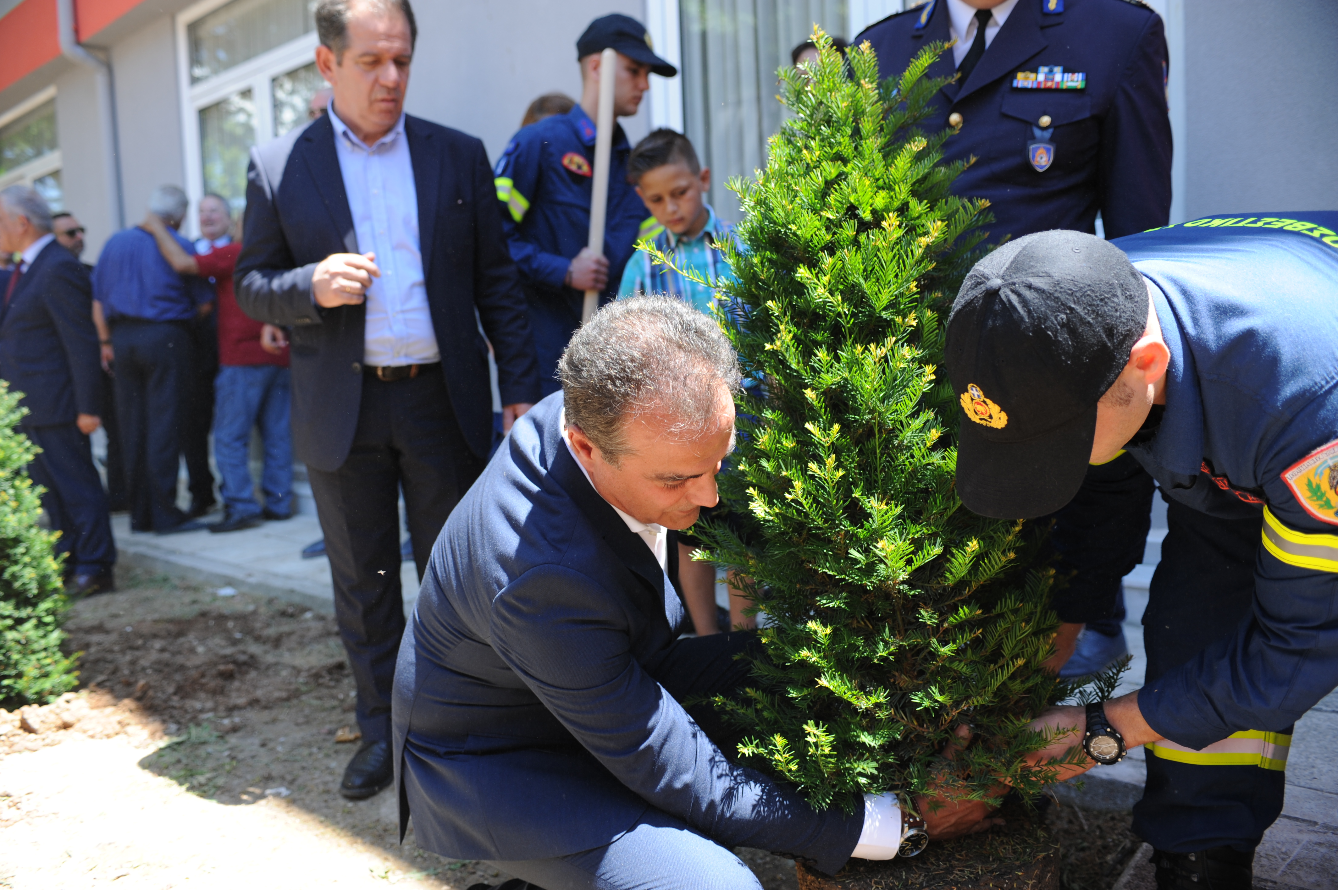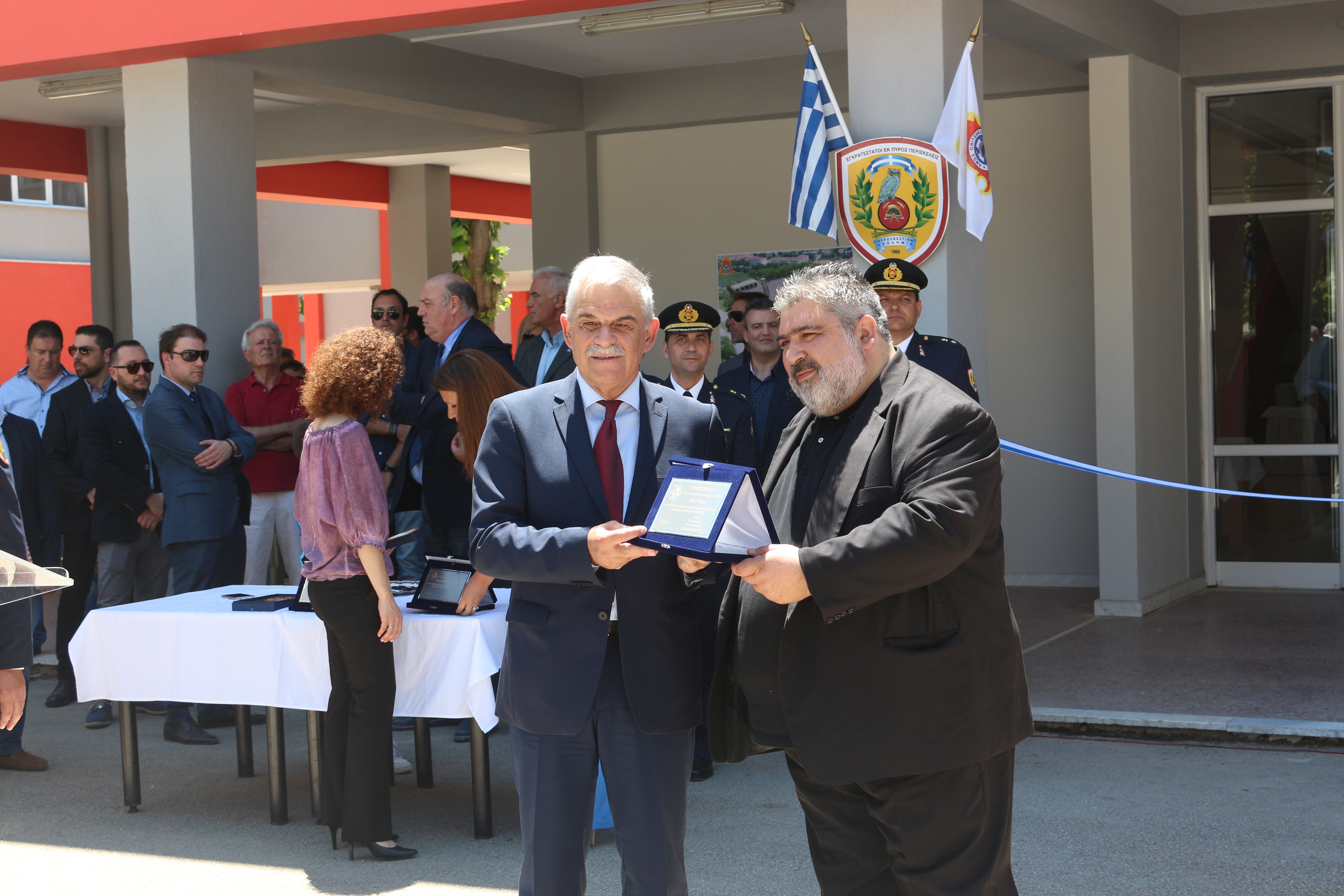 Στη συνέχεια πραγματοποιήθηκε επίδοση αναμνηστικών πλακετών στους επίσημους προσκεκλημένους, ενώ ακολούθησε συμβολική δεντροφύτευση στο προαύλιο της σχολής σηματοδοτώντας την σημαντική βούληση ίδρυσης και ανάπτυξης της Σχολής Πυροσβεστών στην περιοχή.