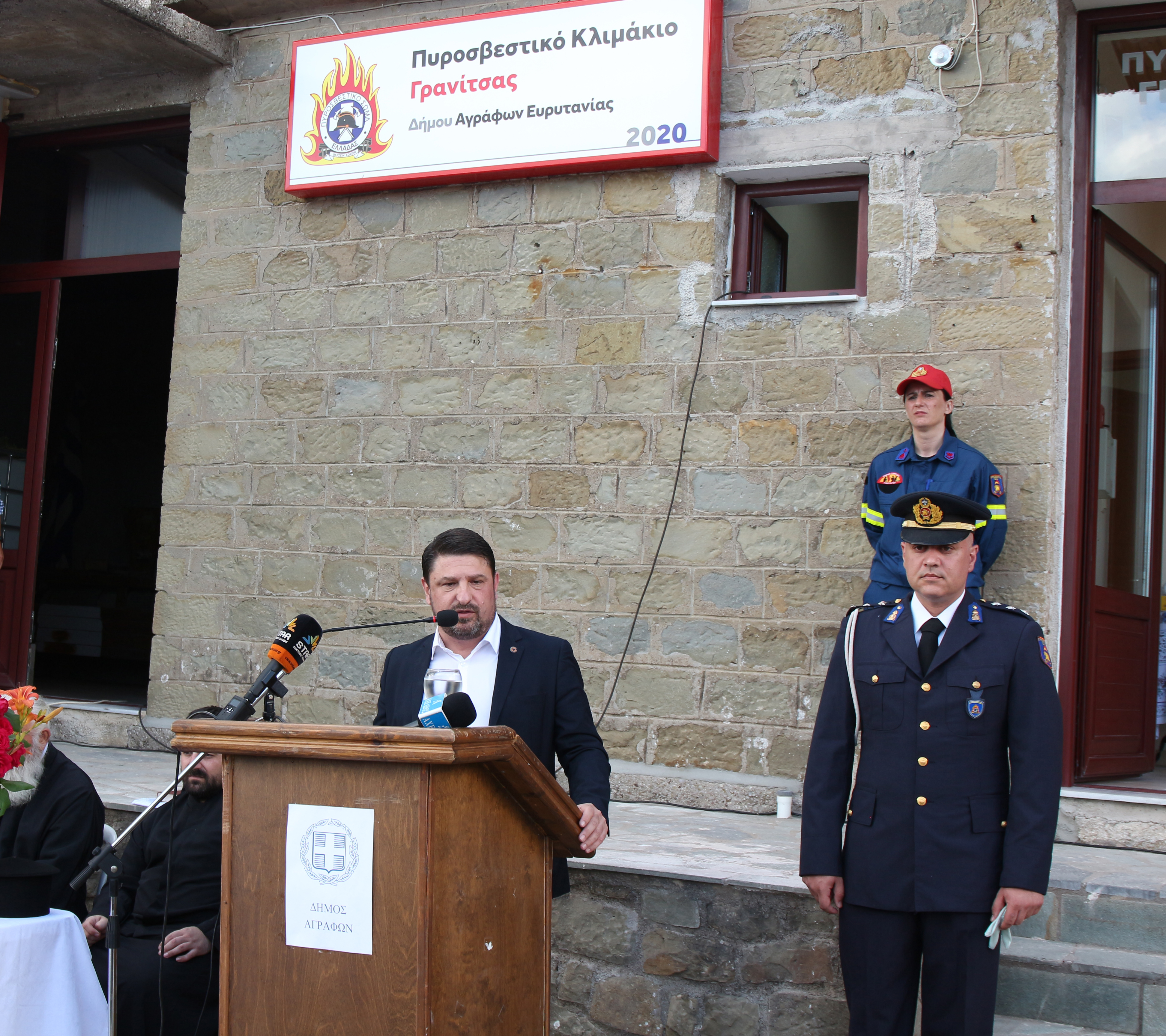 Παρουσία του Υφυπουργού Πολιτικής Προστασίας και Διαχείρισης Κρίσεων Νίκου Χαρδαλιά και του Αρχηγού Πυροσβεστικού Σώματος Αντιστράτηγου Στέφανου Κολοκούρη, πραγματοποιήθηκαν σήμερα, 13 Ιουνίου 2020, τα εγκαίνια του Πυροσβεστικού Κλιμακίου Γρανίτσας, του Δήμου Αγράφων, στο νομό Ευρυτανίας.