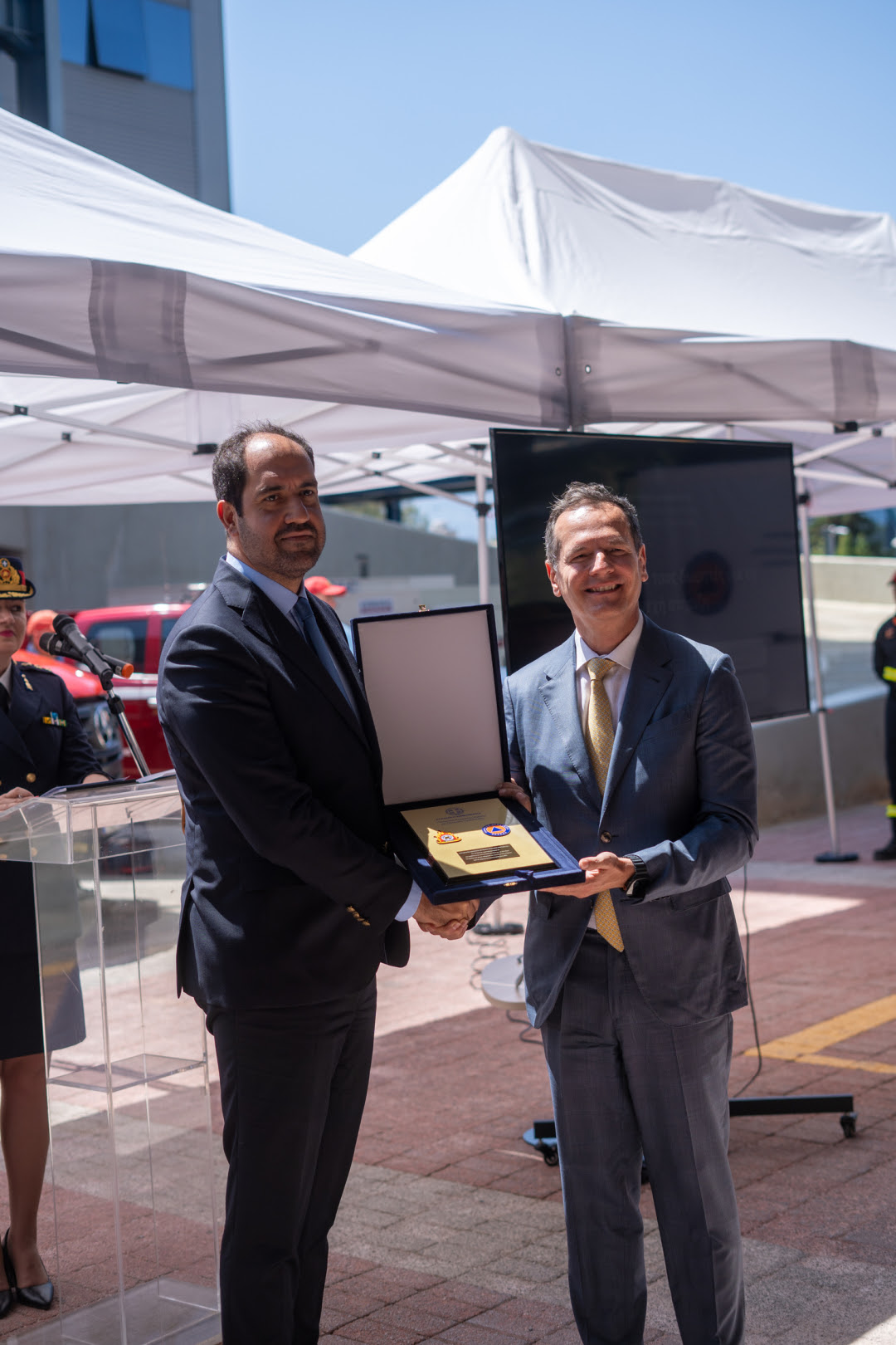 «Με ιδιαίτερη συγκίνηση και τιμή βρίσκομαι σήμερα ανάμεσά σας, σε μια εκδήλωση που ξεπερνά τον χαρακτήρα μιας τυπικής επίσημης τελετής. Βρισκόμαστε εδώ για να αποδώσουμε, όλοι μαζί, τον σεβασμό, την ευγνωμοσύνη και την εκτίμησή μας σε εκείνους που με πράξεις γενναιοδωρίας και υψηλού κοινωνικού ήθους, επέλεξαν να σταθούν στο πλευρό των ανθρώπων της πρώτης γραμμής. Σε εκείνους που ενίσχυσαν το Πυροσβεστικό Σώμα με πολύτιμο εξοπλισμό και υπηρεσίες, ώστε να καταστεί ακόμη πιο ικανό να επιτελέσει το δύσκολο και απαιτητικό έργο του.