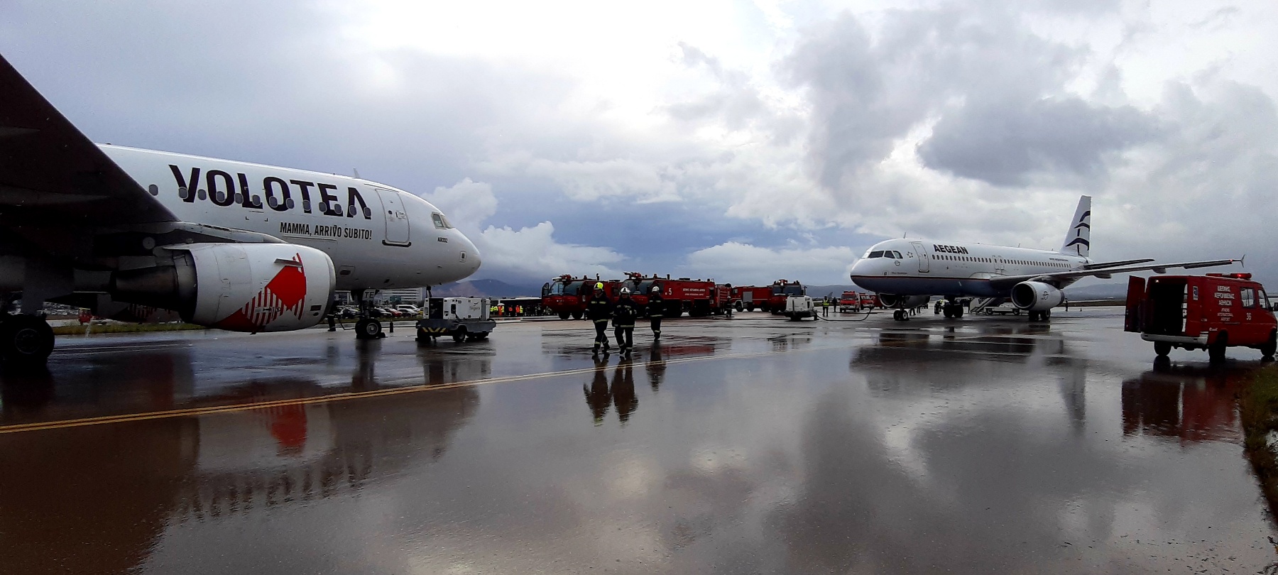 Από την σύγκρουση τραυματίζονται αρκετοί επιβαίνοντες και στα δύο αεροσκάφη ενώ ο κινητήρας του αεροσκάφους της Volotea παίρνει φωτιά.