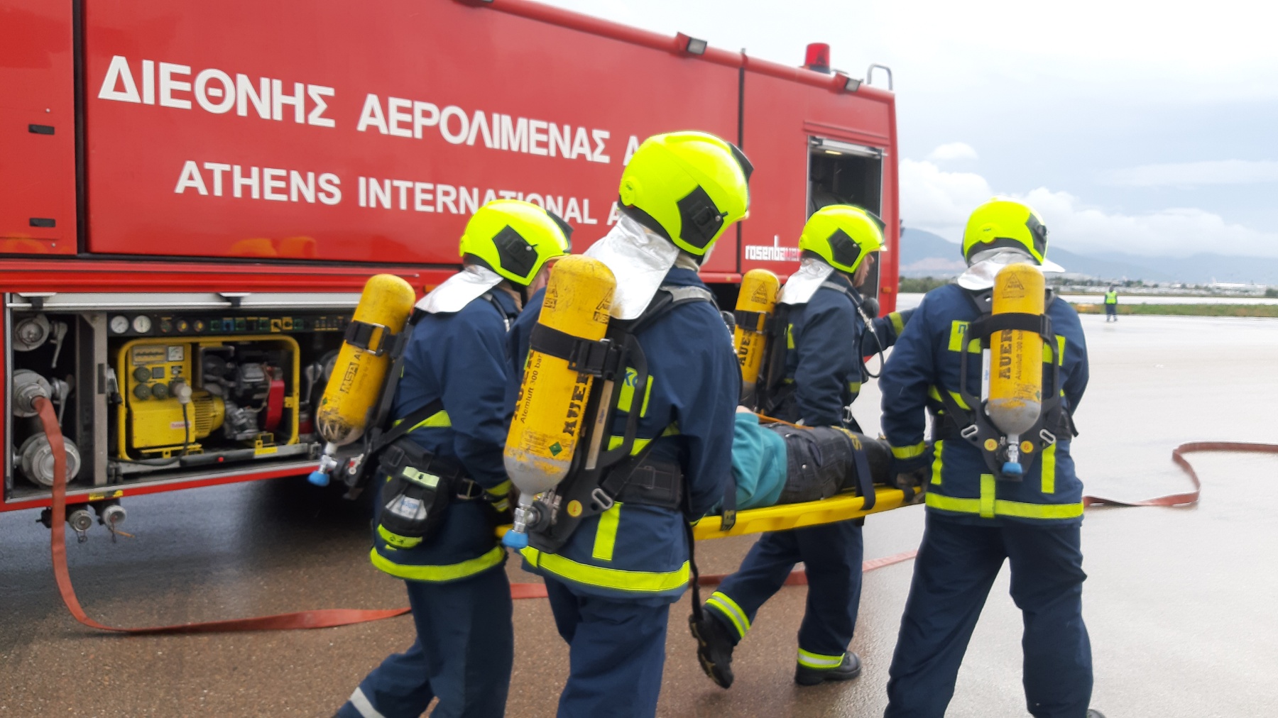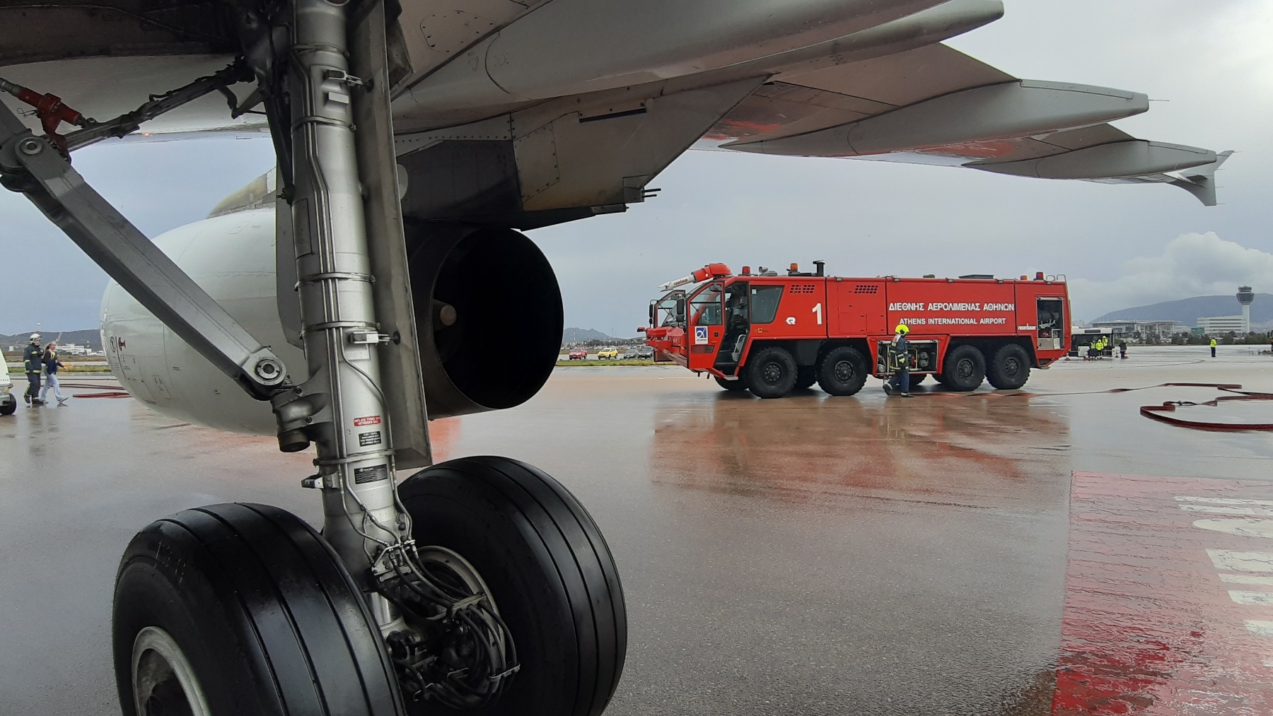 Η Πυροσβεστική Υπηρεσία του Διεθνή Αερολιμένα Αθηνών «Ελευθέριος Βενιζέλος» ως πρώτος ανταποκριτής στο περιστατικό που έλαβε χώρα στο χώρο ευθύνης της, ζητάει ενισχύσεις από τις Πυροσβεστικές Υπηρεσίες, Μαρκοπούλου, Κρωπίας και Παλλήνης αλλά και από κλιμάκιο της 1ης ΕΜΑΚ. Με συντονισμένες ενέργειες, η πυρκαγιά αντιμετωπίστηκε άμεσα και ταυτόχρονα απομακρύνθηκαν οι τραυματίες τους οποίους παρέλαβε ασθενοφόρο του ΕΚΑΒ.