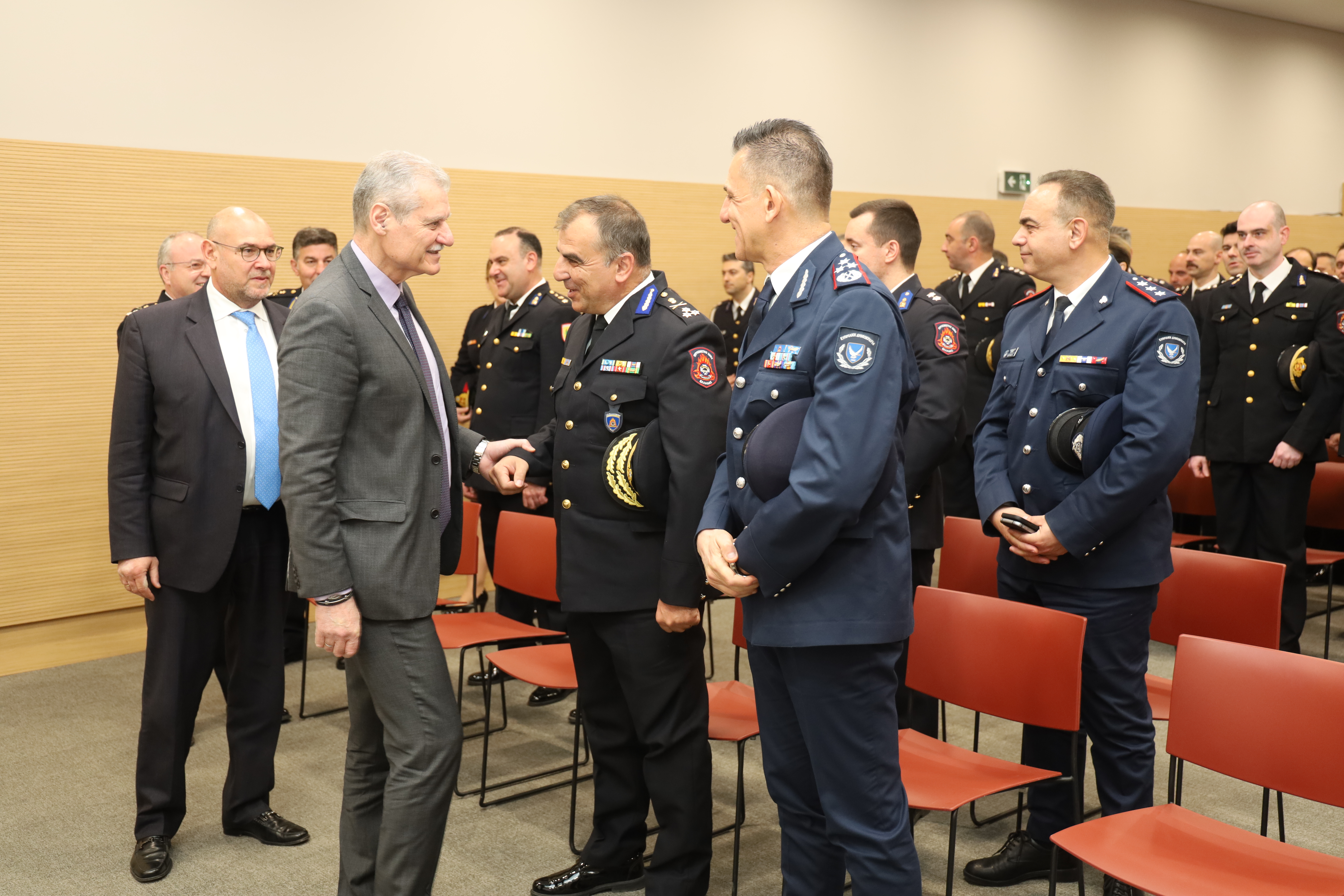 Ο Υφυπουργός Κλιματικής Κρίσης και Πολιτικής Προστασίας Ευάγγελος Τουρνάς αφού επέδωσε τα διπλώματα στους 109 αποφοιτήσαντες Πυραγούς, απηύθυνε χαιρετισμό με παραινέσεις και κατευθύνσεις για διάφορα θέματα υπηρεσιακού ενδιαφέροντος και μεταξύ άλλων τόνισε: «Σας συγχαίρω για την ολοκλήρωση της εκπαίδευσής σας στη Σχολή Επαγγελματικής Μετεκπαίδευσης Επιτελών Στελεχών της Πυροσβεστικής Ακαδημίας, ως ένα σημαντικό βήμα στη σταδιοδρομία σας αλλά και ως εφόδιο απαραίτητο για την εξέλιξή σας στην ανώτερη βαθμίδα των Αξιωματικών του Πυροσβεστικού Σώματος. Αποτελεί ανάγκη για το Πυροσβεστικό Σώμα η κατάρτιση και η εκπαίδευση των στελεχών του, σε συνδυασμό με την απαραίτητη επιχειρησιακή γνώση ώστε να μπορούν να αντιμετωπίζουν τις σύγχρονες προκλήσεις που φέρνει η κλιματική κρίση. Μία κρίση, η οποία αλλάζει το πεδίο επιχειρήσεων, φέρνοντας συνεχώς ολοένα και συχνότερα φυσικά φαινόμενα, που πολλές φορές ξεπερνούν τις ανθρώπινες δυνατότητες αλλά και τους μηχανισμούς. Για το σκοπό αυτό χρειάζεται να συνεχίσουμε να επενδύουμε στην πρόληψη όσο και στην καταστολή με ένα πρόγραμμα που ξεκινήσαμε πριν από τρία χρόνια. Ειδικότερα, στον τομέα της πρόληψης θα πρέπει να βελτιώσουμε την ανθεκτικότητα έναντι των σεισμών, των πλημμυρικών φαινομένων και των πυρκαγιών σε συνεργασία με τα συναρμόδια Υπουργεία και φορείς. Αντίστοιχα στον τομέα της αντιμετώπισης και καταστολής προχωράμε στην ενίσχυση του μηχανισμού αντιμετώπισης φυσικών καταστροφών και ιδιαίτερα του Πυροσβεστικού Σώματος, που αποτελεί τον κυρίαρχο επιχειρησιακό βραχίονα της Πολιτικής Προστασίας. Με βασικό εργαλείο το πρόγραμμα «ΑΙΓΙΣ» αξίας 2,1 δις €, προχωράμε στην ολοκλήρωση των 39 υποπρογραμμάτων του, για την απόκτηση του απαραίτητου υλικοτεχνικού εξοπλισμού, των μέσων -επίγειων και εναέριων- των ψηφιακών συστημάτων Διοίκησης και Ελέγχου των επιχειρήσεων και όλων των συναφών λειτουργιών που θα κάνουν το Πυροσβεστικό Σώμα αλλά και συνολικά τον Μηχανισμό περισσότερο λειτουργικό και αποτελεσματικό. Παράλληλα προχωράμε στην ενίσχυση του Πυροσβεστικού Σώματος με ανθρώπινο δυναμικό, διπλασιάζοντας τους εισερχόμενους στις παραγωγικές σχολές μέσω των πανελλήνιων εξετάσεων και επιπλέον προσλαμβάνοντας προσωπικό μέσω προκηρύξεων διαγωνιστικών διαδικασιών. Για εφέτος προχωράμε στην πρόσληψη επιπλέον 300 Δασοκομάντος και 150 Πυροσβεστών Οδηγών και έτσι οι Μονάδες των Δασοκομάντος θα γίνουν 20 σε όλη τη Χώρα και ακόμη προχωράμε στην πρόσληψη 2.500 εποχικών πυροσβεστών. Με αυτό τον τρόπο αυξήσαμε τον αριθμό του μόνιμου προσωπικού από 13.000 άτομα σε 15.500 το 2025 και μαζί με τους εποχικούς θα διαθέτουμε 18.000 προσωπικό για την επερχόμενη αντιπυρική περίοδο. Σε αυτό το πλαίσιο αντιλαμβάνεστε ότι η επιμόρφωσή σας στη Σχολή που μόλις ολοκληρώσατε, είναι απαραίτητο εφόδιο για τις θέσεις που θα κληθείτε να υπηρετήσετε στη συνέχεια. Παράλληλα, είναι ανάγκη να συνεχίζετε και μόνοι σας την επιμόρφωσή σας, σε μια διαδικασία διά βίου μάθησης με σκοπό να προετοιμαστείτε να ηγηθείτε ενός Σώματος που εξελίσσεται και εκσυγχρονίζεται και βέβαια για να μπορείτε να αντιμετωπίζετε τις προκλήσεις που σας επιφυλάσσει η κλιματική κρίση. Και πάλι σας συγχαίρω για την επιτυχή ολοκλήρωση των σπουδών σας και εύχομαι σε όλους μας καλή αντιπυρική περίοδο».