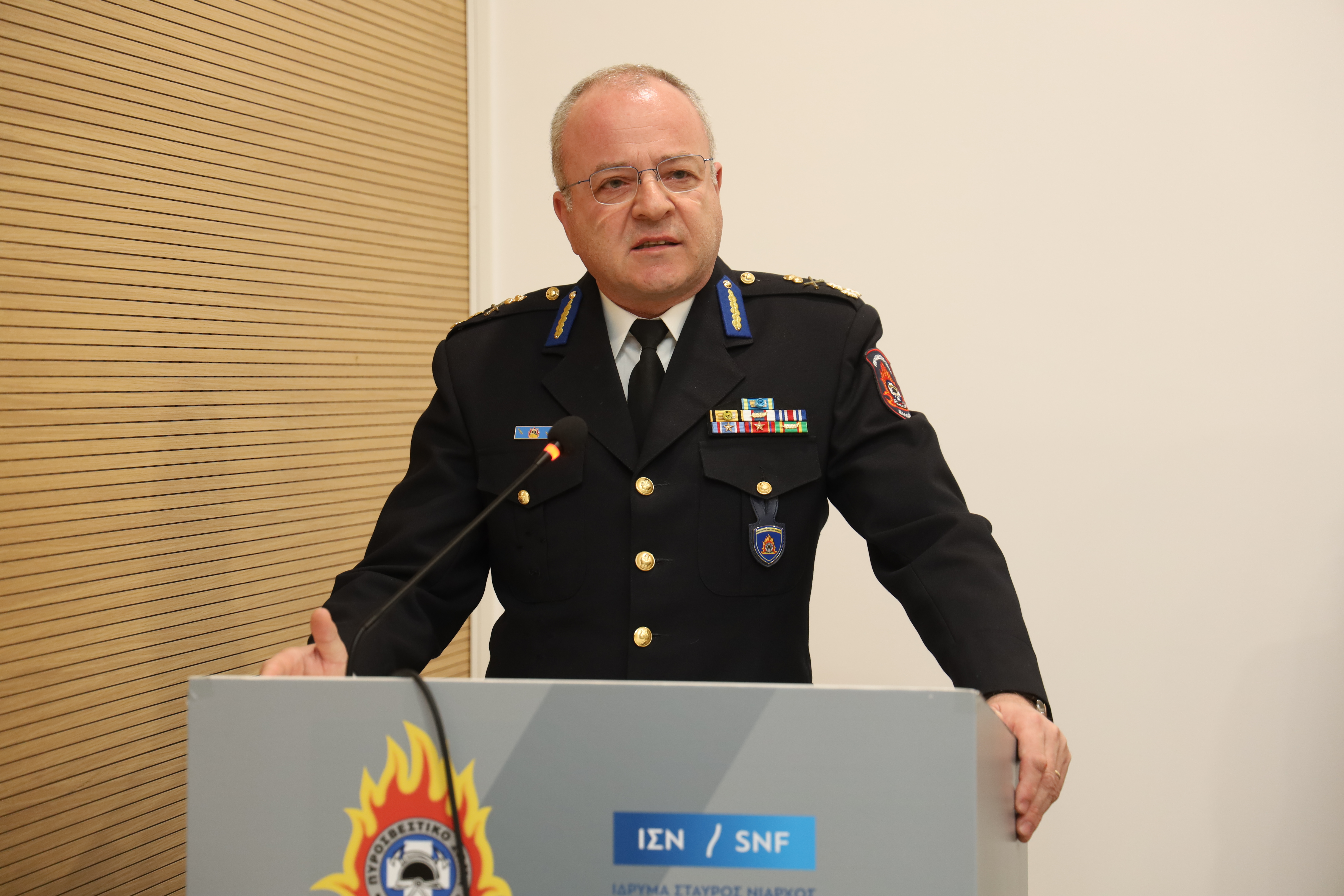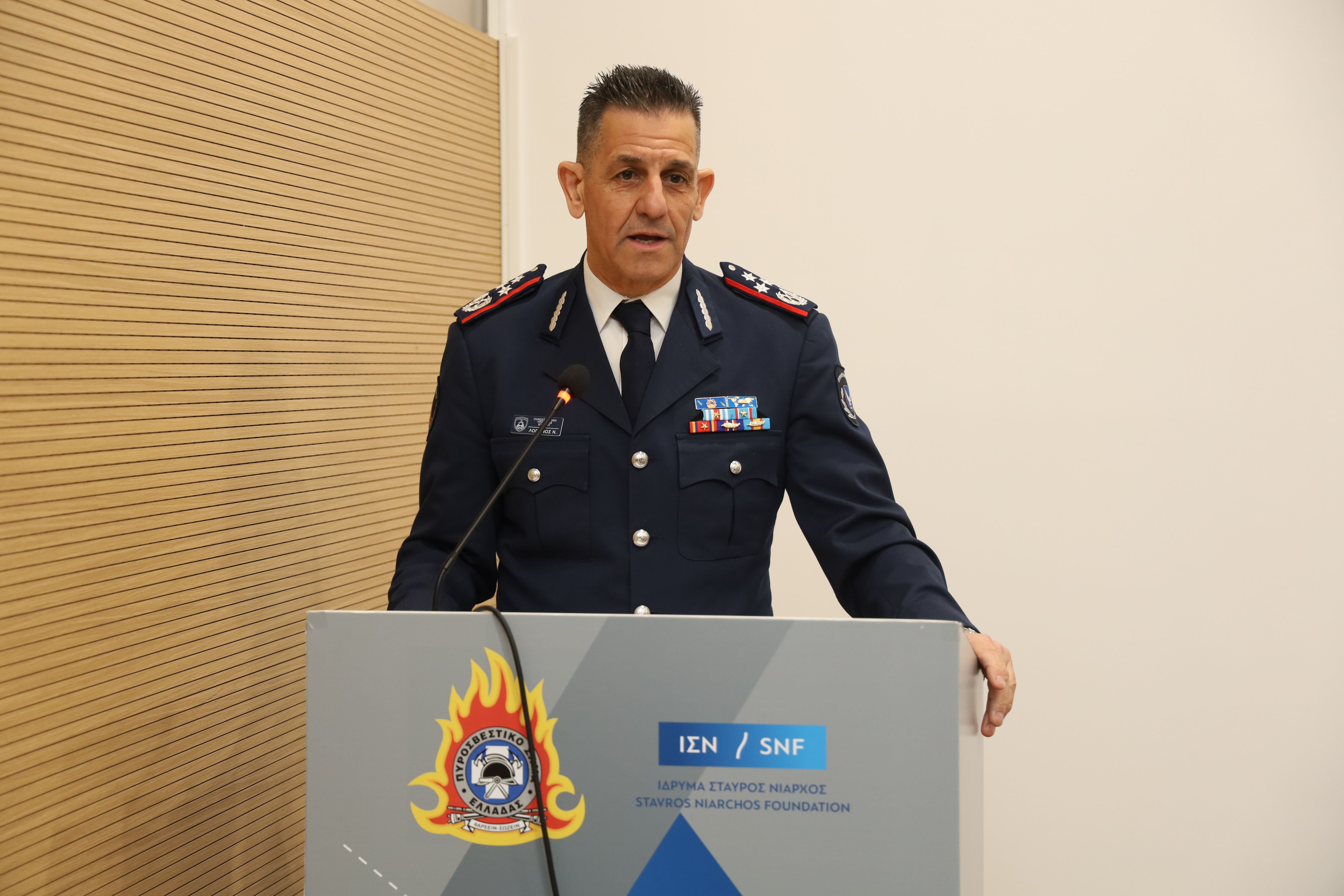 Ο Αρχηγός του Πυροσβεστικού Σώματος Αντιστράτηγος Θεόδωρος Βάγιας στο σύντομο χαιρετισμό του τόνισε: «… Στη σημερινή αποφοίτηση των στελεχών της Σχολής Επιμόρφωσης Επιτελών Πυραγών, έχουμε την τιμή να είναι κοντά μας ο φίλος και Αρχηγός της Πυροσβεστικής Υπηρεσίας της Κύπρου. Κάθε εκπαίδευση και μετεκπαίδευση είναι σημαντική και αποτελεί επένδυση για τη διαχείριση κρίσεων. Σας συγχαίρω για την ευδόκιμη αποφοίτησή σας και σας τονίζω ότι η γνώση που αποκομίσατε είναι επένδυση για το μέλλον. Οι συνθήκες αλλάζουν, δυσκολεύουν και τις ζήσαμε πέρυσι ίσως στην πιο δύσκολη αντιπυρική περίοδο των τελευταίων ετών. Εμείς από την πλευρά μας οφείλουμε να προσαρμοζόμαστε στις εξελίξεις, προκειμένου να βελτιώνουμε τις υπηρεσίας προς την κοινωνία. Συγχαίρω επίσης τους καθηγητές σας και το προσωπικό της Πυροσβεστικής Ακαδημίας, για την προσπάθεια που κατέβαλλαν το προηγούμενο διάστημα ώστε να ολοκληρωθεί με επιτυχία το συγκεκριμένο πρόγραμμα εκπαίδευσης. Συγχαρητήρια και πάλι σε όλους!»