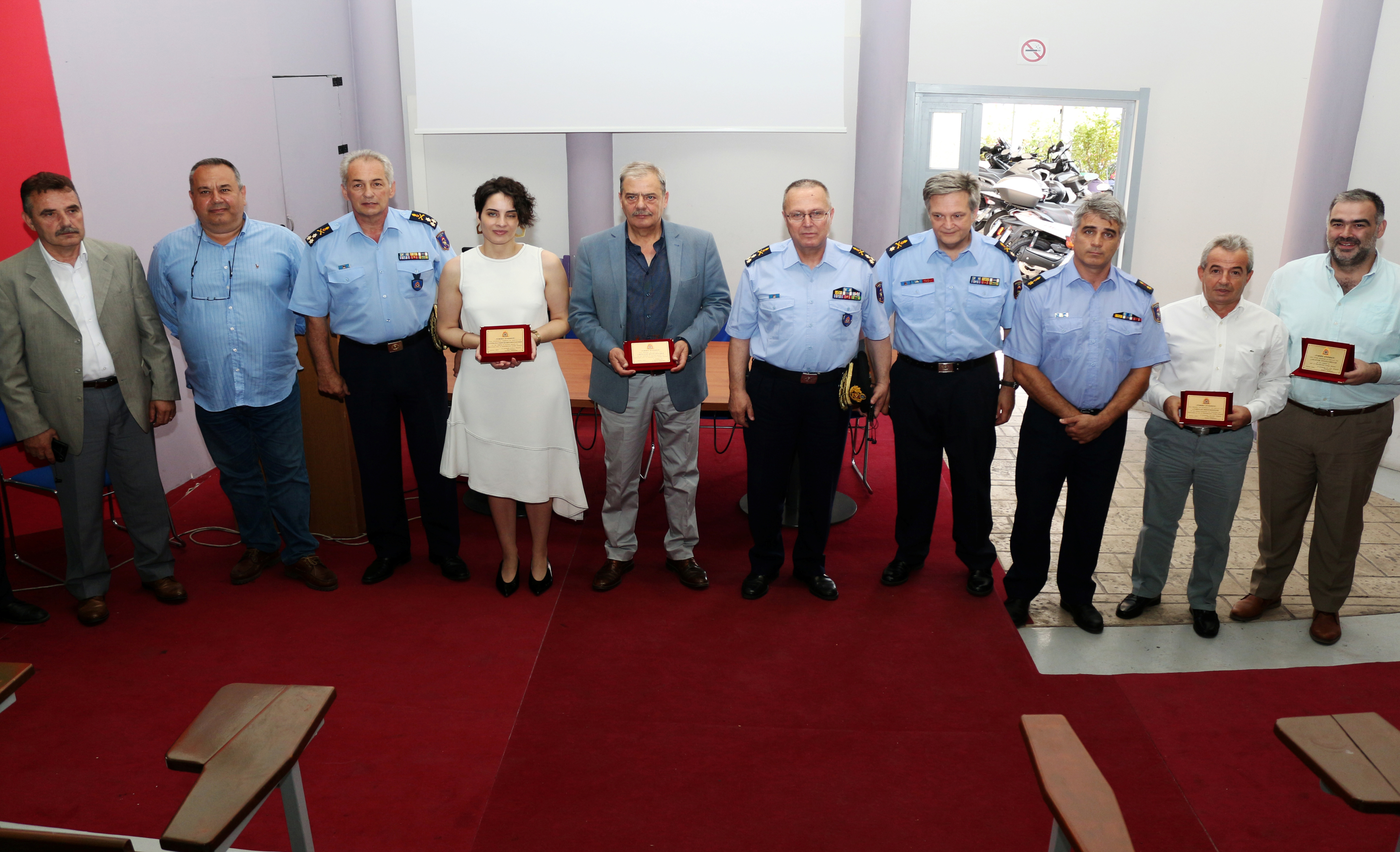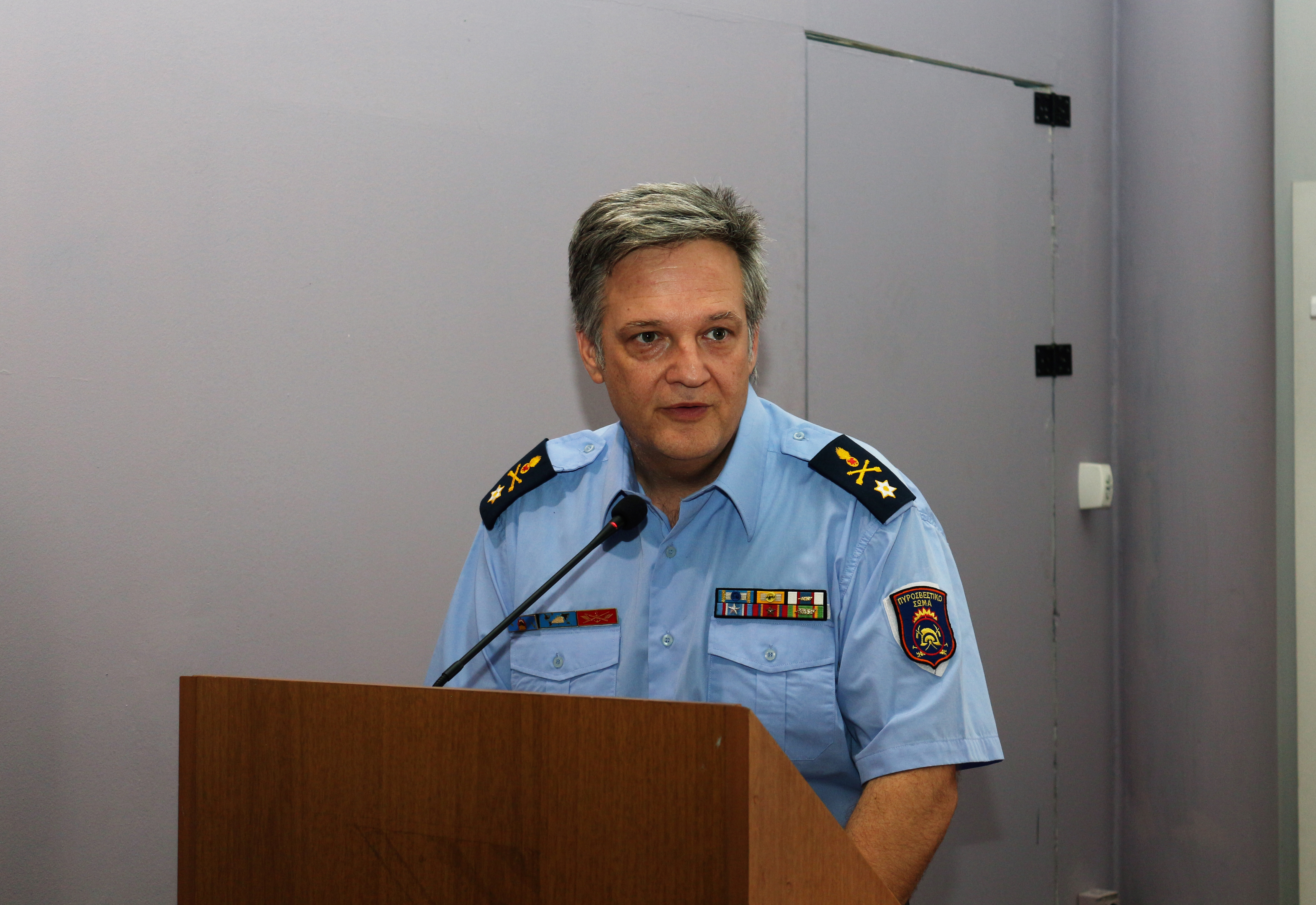 Στον σύντομο χαιρετισμό τους ο Αρχηγός του Πυροσβεστικού Σώματος και ο Διοικητής της Διοίκησης Πυροσβεστικών Υπηρεσιών Πειραιά ευχαρίστησαν τον Πρόεδρο του Οργανισμού για την αρωγή του σε μέσα και εξοπλισμό προς το Πυροσβεστικό Σώμα, ενώ ο Πρόεδρος του Ο.Κ.Α.Α. τόνισε την ικανοποίηση και την εμπιστοσύνη του στο έργο που πραγματοποιεί το Πυροσβεστικό Σώμα. Στη συνέχεια ο Αρχηγός του Πυροσβεστικού Σώματος απέδωσε τιμητική πλακέτα στον Πρόεδρο του Οργανισμού Μιχαήλ Μυτηλινάκη, ο Υπαρχηγός Υποστήριξης του Πυροσβεστικού Σώματος Αντιστράτηγος ΠΣ Δημοσθένης Αναγνωστάκης στη Διευθύνουσα Σύμβουλο Στεφανία Γεωργακάκου – Κουτσονίκου, ο Διοικητής ΔΙ.Π.Υ. Πειραιά Αρχιπύραχος Ιωάννης Σταμούλης στον Γενικό Διευθυντή Βασίλειο Τριανταφύλλη και ο Διοικητής του 1ου Πυροσβεστικού Σταθμού Πειραιά Επιπυραγός Πέτρος Αλάμαρας στον Πρόεδρο των εργαζομένων του Οργανισμού Νικόλαο Μπούμπουρη.