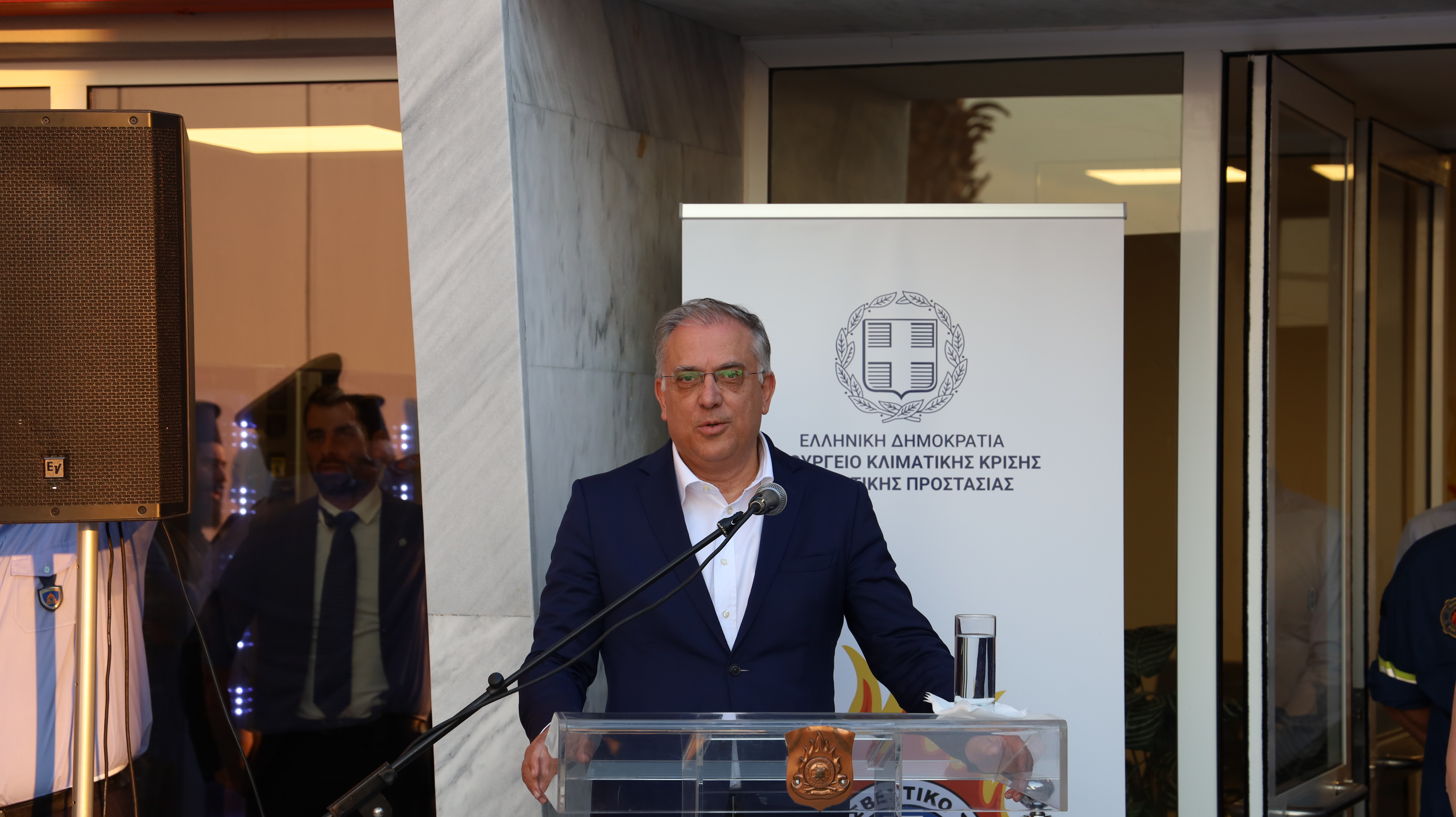 Σύντομο χαιρετισμό απηύθυναν ο Υπουργός Προστασίας του Πολίτη, Τάκης Θεοδωρικάκος και ο Υφυπουργός Κλιματικής Κρίσης και Πολιτικής Προστασίας Ευάγγελος Τουρνάς, οι οποίοι, αφού συνεχάρησαν το Πυροσβεστικό Σώμα για την επιτυχή αντιμετώπιση της πρόσφατης πυρκαγιάς στη Γλυφάδα, αλλά και για τη γενικότερη επιχειρησιακή απόδοση, απένειμαν τα εύσημα για την άψογη συνεργασία με την Ελληνική Αστυνομία και ευχήθηκαν καλή δύναμη στο έργο των πυροσβεστών, εν όψει της δύσκολης αντιπυρικής περιόδου, που είναι ήδη σε εξέλιξη.