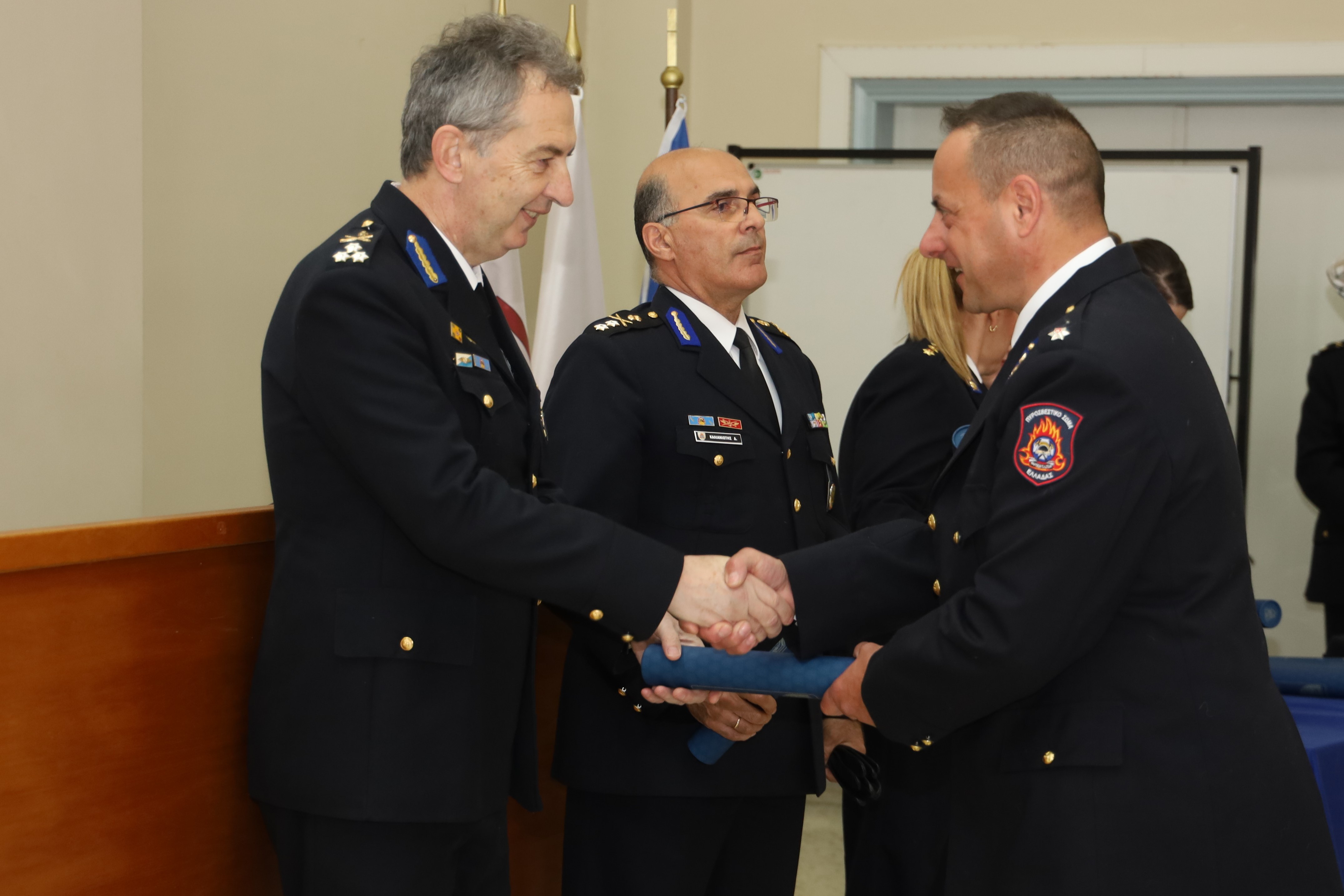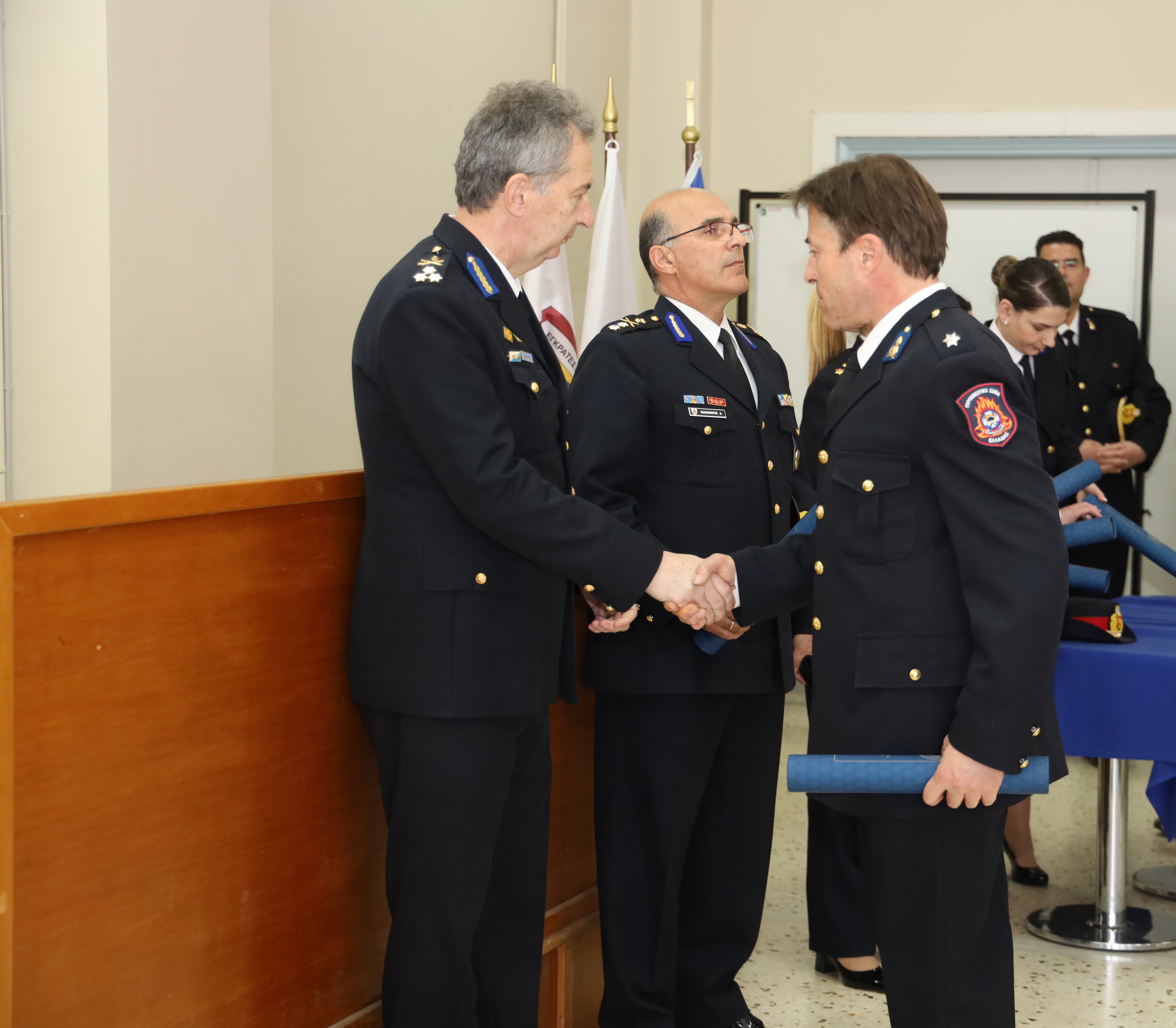 Στη συνέχεια, ο Αρχηγός του Πυροσβεστικού Σώματος Αντιστράτηγος Γεώργιος Πουρναράς, επέδωσε τα διπλώματα στους είκοσι οκτώ (28) άνδρες και  δύο (2) γυναίκες Ανθυποπυραγούς.