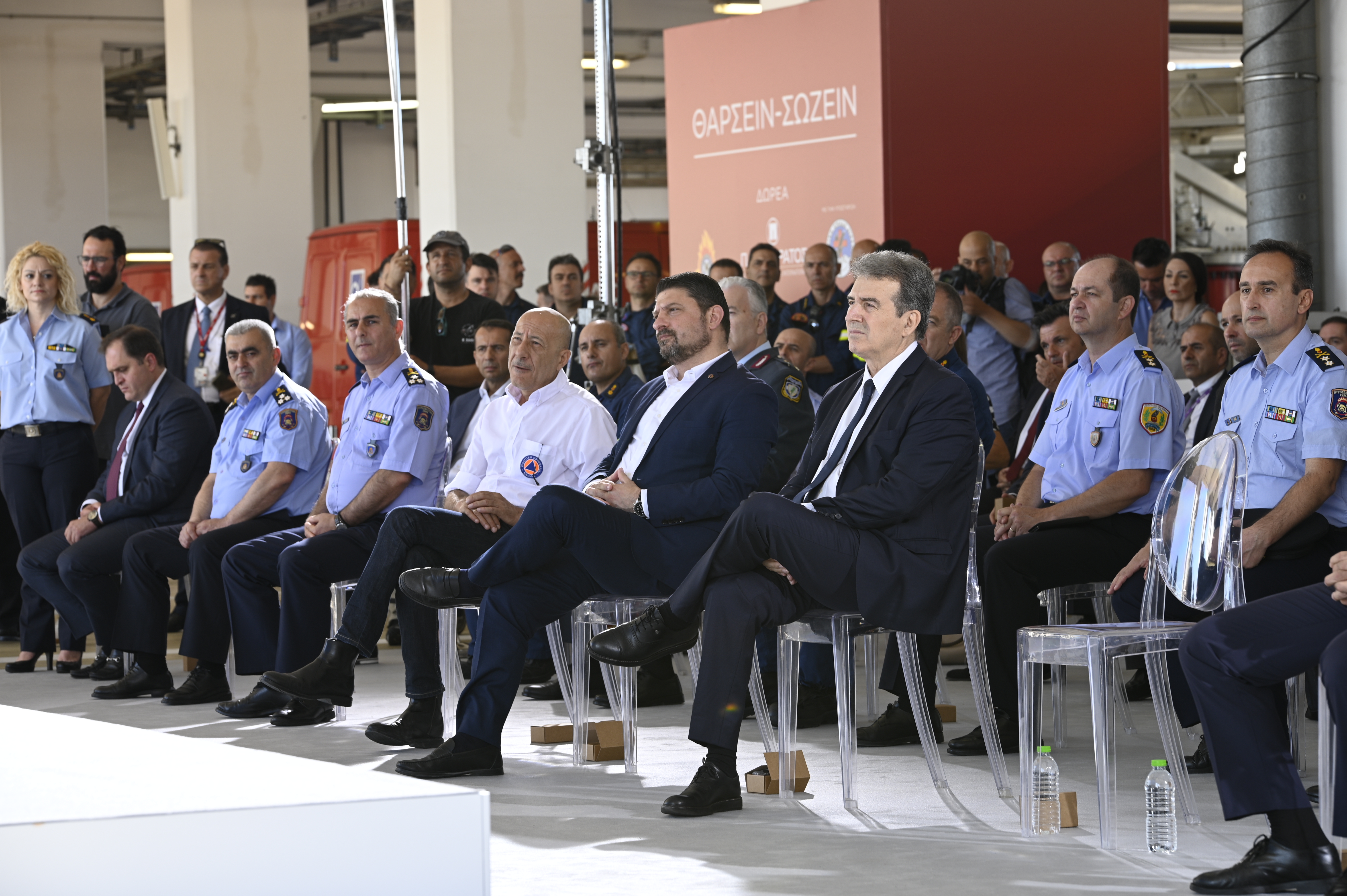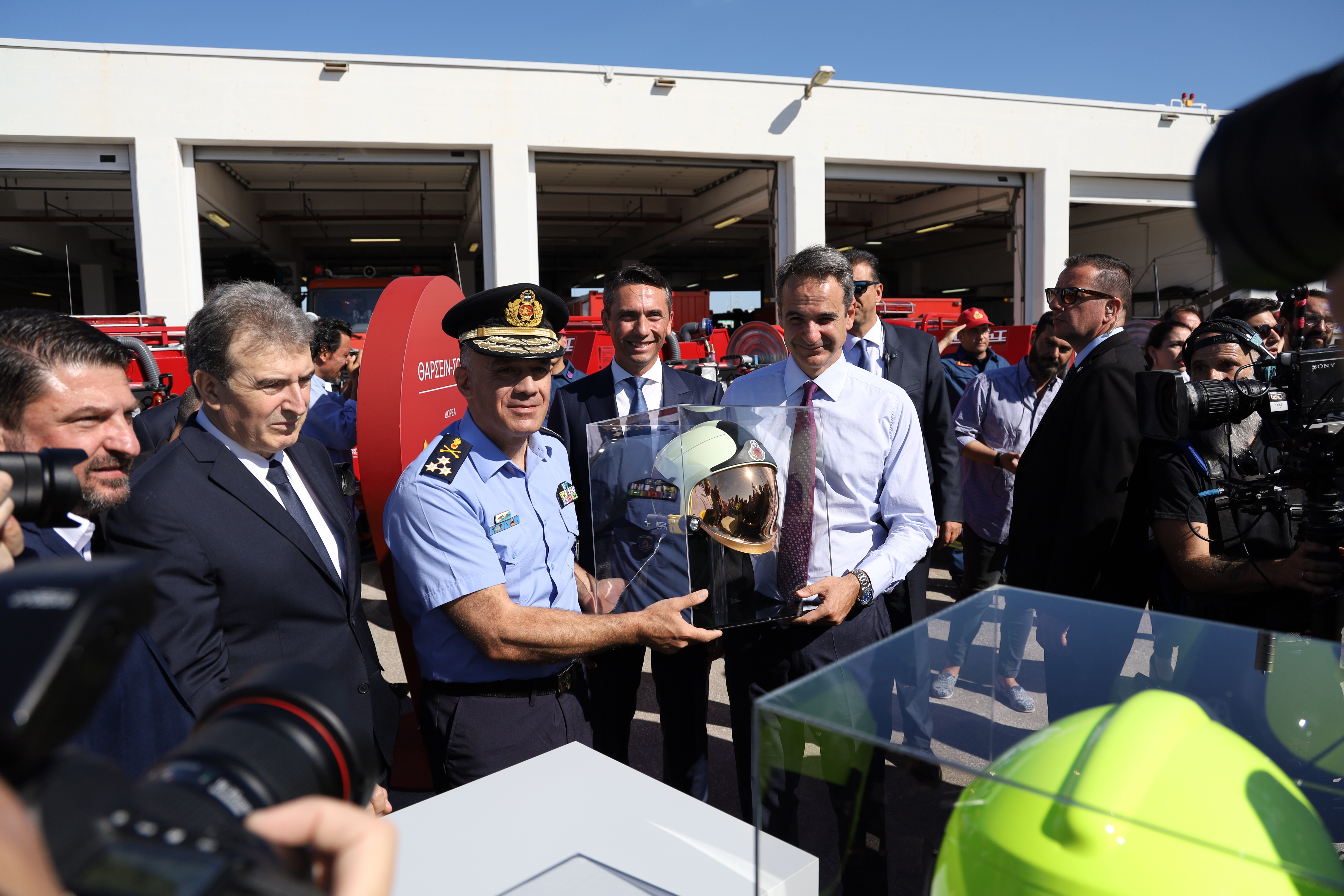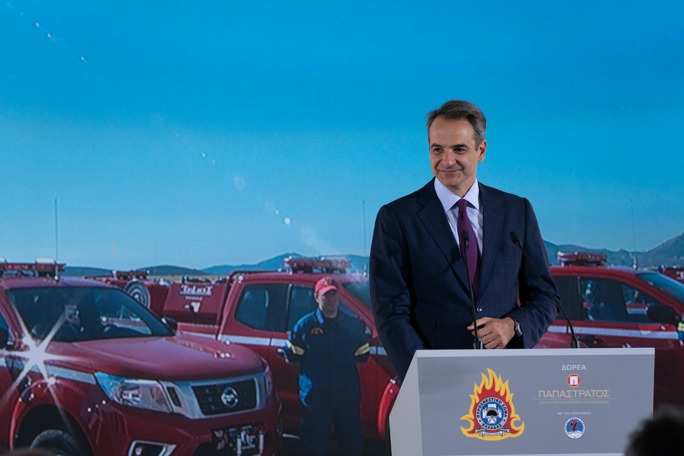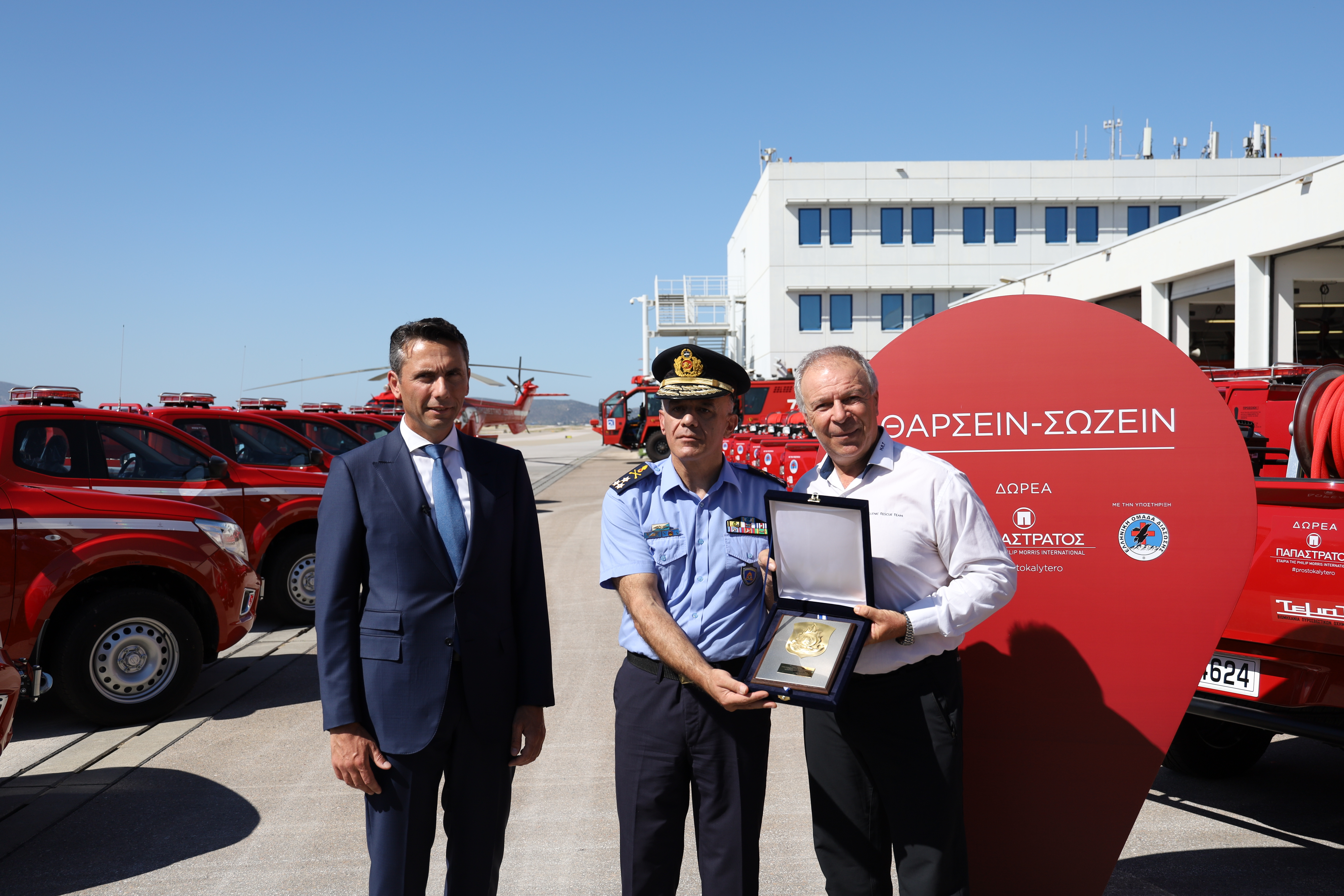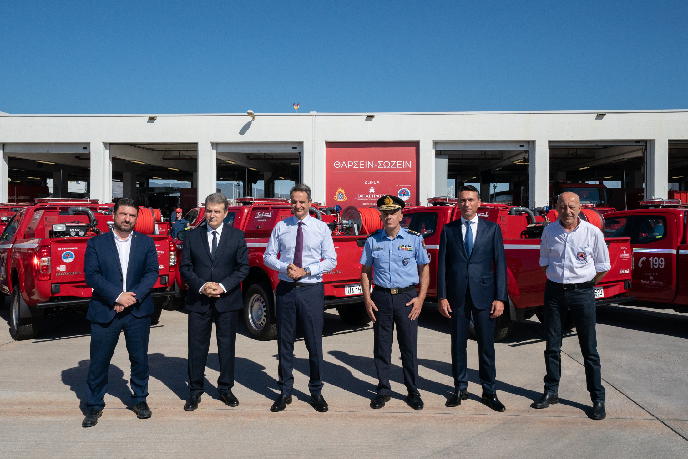 Παρουσία του Πρωθυπουργού, Κυριάκου Μητσοτάκη, πραγματοποιήθηκε σήμερα, 19 Ιουνίου, στις εγκαταστάσεις του Διεθνούς Αερολιμένα Αθηνών Ελ. Βενιζέλος, η τελετή παράδοσης στο Πυροσβεστικό Σώμα είκοσι (20) υδροφόρων πυροσβεστικών οχημάτων 4Χ4, ελαφρού τύπου, με δεξαμενή νερού χωρητικότητας 500lit, αυτόνομου πυροσβεστικού συγκροτήματος, δωρεά της εταιρείας ΠΑΠΑΣΤΡΑΤΟΣ Α.Β.Ε.Σ. με την υποστήριξη της Ελληνικής Ομάδας Διάσωσης (Ε.Ο.Δ.). Η αξία των οχημάτων αγγίζει σχεδόν το 1 εκατ. ευρώ.