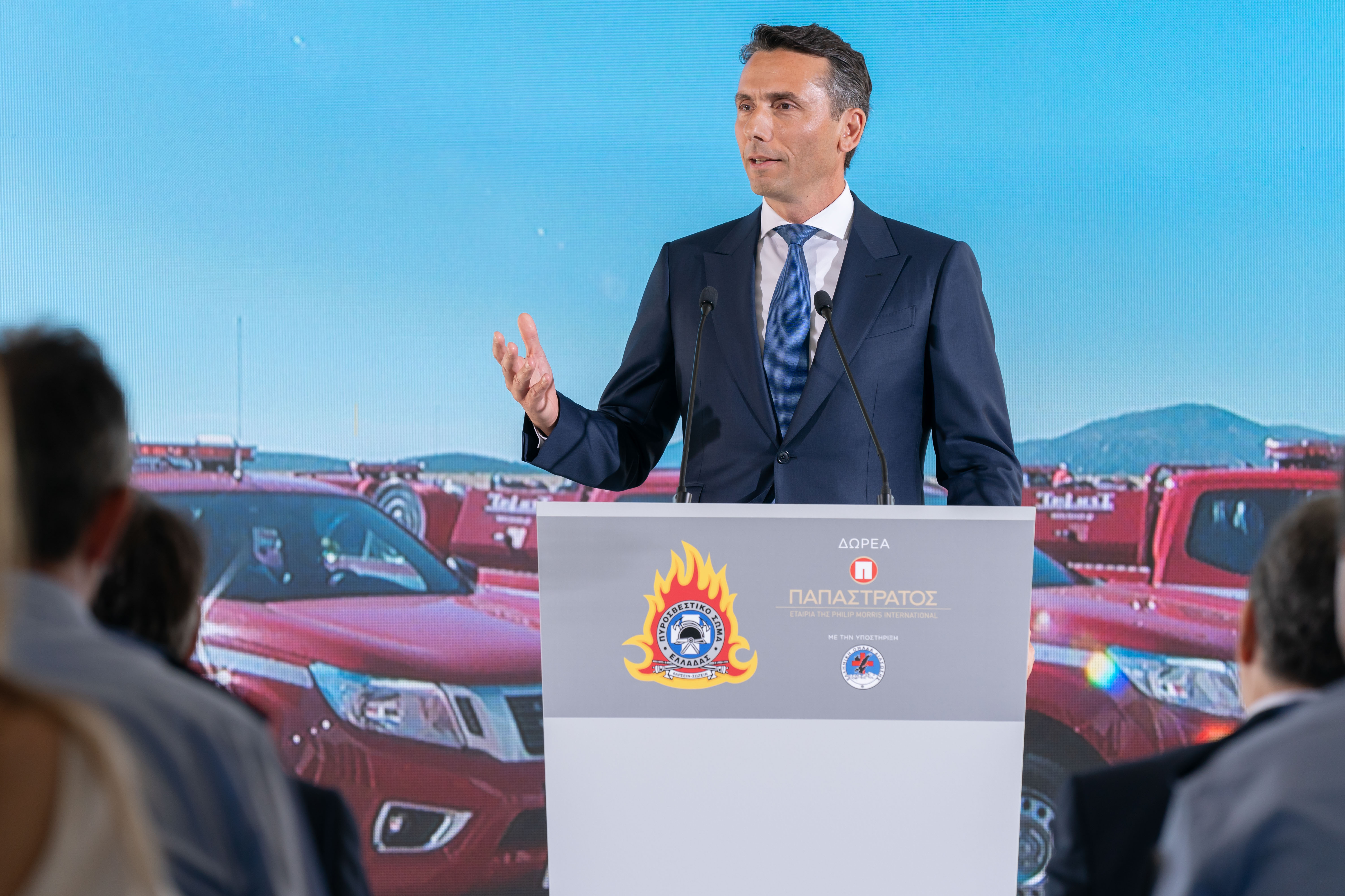 Την εταιρεία Παπαστράτος, εκπροσώπησε ο Πρόεδρος & Διευθύνων Σύμβουλος της, κ. Χρήστος Χαρπαντίδης, ο οποίος μέσα από έναν πολύ σύντομο χαιρετισμό εξήρε τη συνεισφορά του Πυροσβεστικού σώματος, τη γενναιότητα, την προθυμία και την ετοιμότητα με την οποία στηρίζουν την κοινή πορεία όλων μας προς το καλύτερο, τονίζοντας ότι, «Η σημερινή ημέρα είναι αφιερωμένη στις γυναίκες & τους άνδρες της Πυροσβεστικής. Σε κάθε ανάγκη, οι πυροσβέστες σπεύδουν προς την κατεύθυνση απ’ όπου όλοι αποχωρούν. Σήμερα, εδώ, σκύβουμε το κεφάλι με σεβασμό στην αυταπάρνησή σας. Και υποσχόμαστε ότι θα είμαστε κι εμείς, στην Παπαστράτος, παρόντες, πάντα, σε αυτό το ΜΑΖΙ που τόσο μοναδικά ορίζετε με το έργο σας».