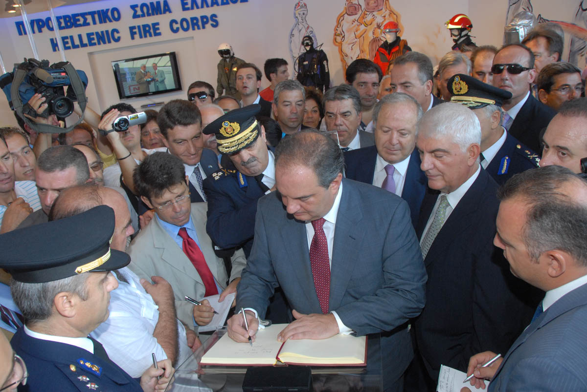 Το περίπτερο του Πυροσβεστικού Σώματος στην 74η Διεθνή Έκθεση Θεσσαλονίκης, επισκέφθηκε, στις 5 Σεπτεμβρίου, ο Πρωθυπουργός κ. Κώστας Καραμανλής.